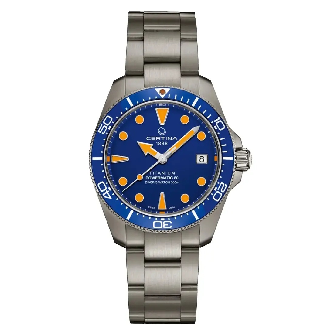 Certina DS Action Diver 38 mm yhdistää ammattitason sukeltajakellon ominaisuudet moderniin, kevyeseen rakenteeseen. Titaanikotelo tekee kellosta huomattavasti terästä kevyemmän ja miellyttävän ranteessa – ilman kompromisseja kestävyydessä.