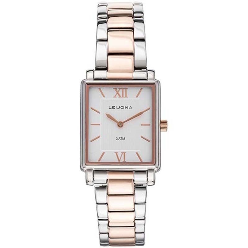 Tyylikäs naisten rannekello kaksivärisellä teräsrannekkeella. Rannekellossa on 24 mm leveä hopea kellotaulu.