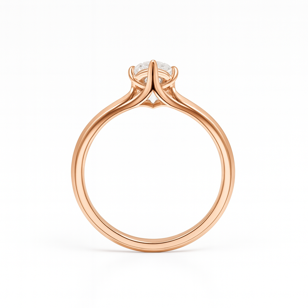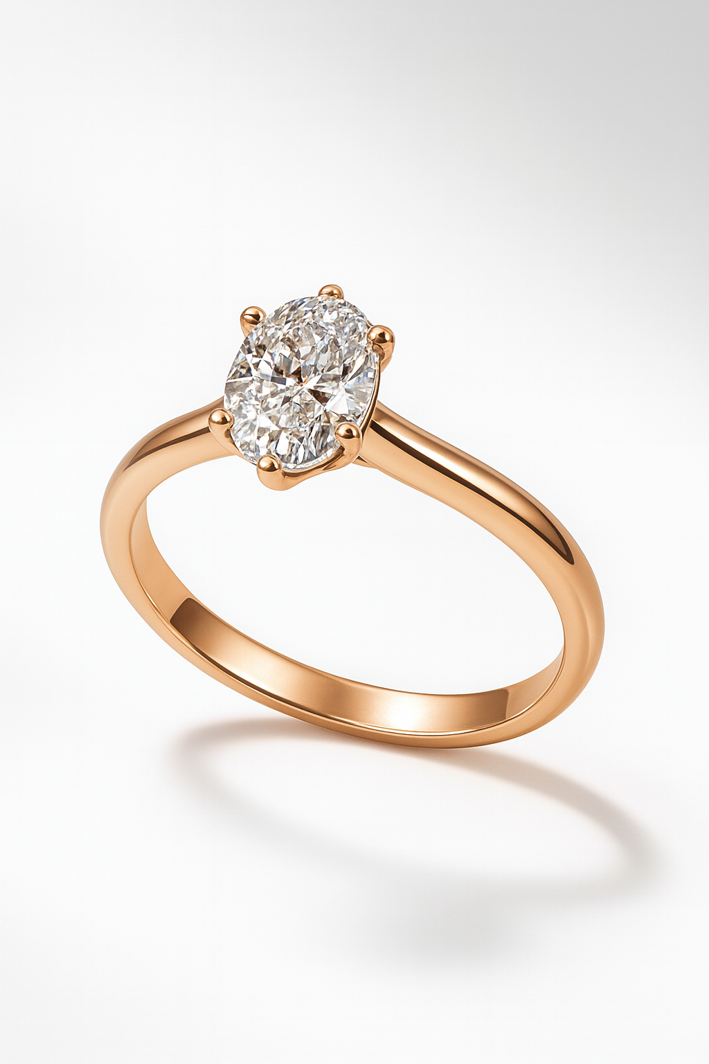 Aurora One  on modernin ylellisyyden mestariteos, jossa yhdistyvät pehmeä ruusukullan lämpö ja näyttävä, soikeaksi hiottu 1,0 ct laboratorio­kasvatettu timantti. Timantin pitkänomainen muoto antaa kiveen poikkeuksellisen valon leikin, tehden siitä luonnollista suuremman ja korostaen sen eleganttia kimmellystä.