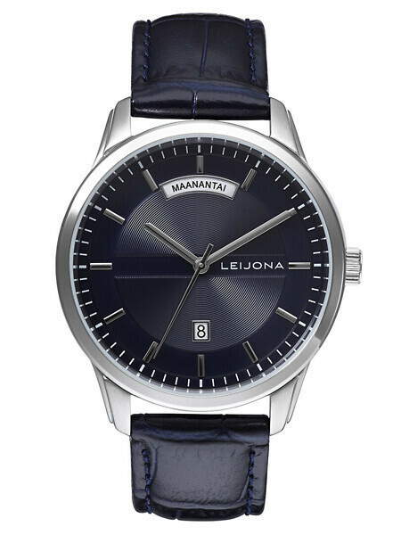 Klassinen ja elegantti Leijona Töölö miestenrannekello mustalla nahkarannekkeella ja mustalla kellotaululla. Tämä siisti rannekello sopii hienosti puvun kanssa.