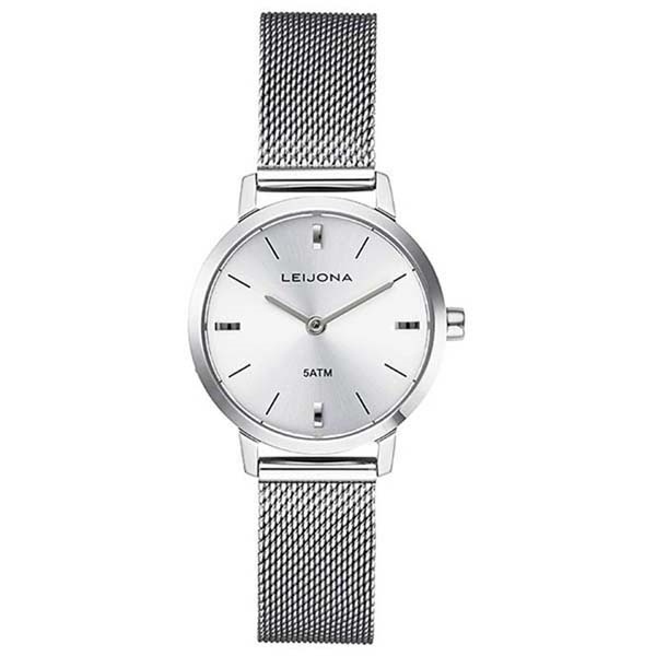 Eira naisten rannekello meshrannekkeella. Rannekellossa on 26 mm leveä hopea kellotaulu, jossa on viivaindeksit kello 12, 3, 6 ja 9 kohdalla. Kello on vesitiivis 50 m saakka.