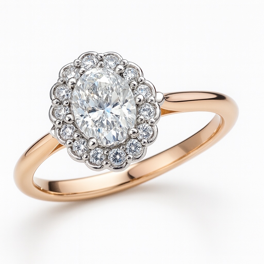 Timanttisormus 1.00 ct Oval – 14x 0.02 ct Halo