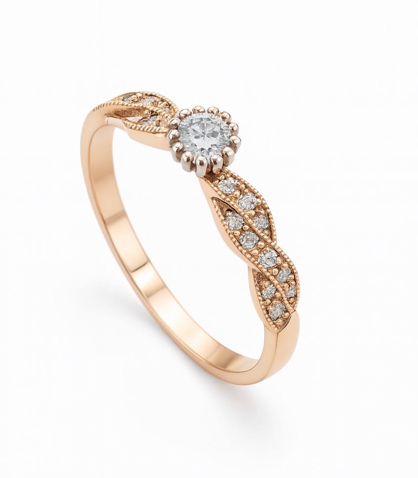 Daisy timanttisormus – roosakultainen vintage-henkinen kaunotar